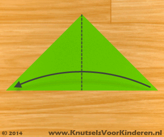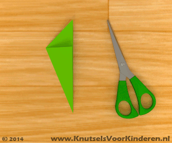 Vouw het blaadje nog een keer dubbel zodat de linker schuine rand op de rechter rand komt te liggen.