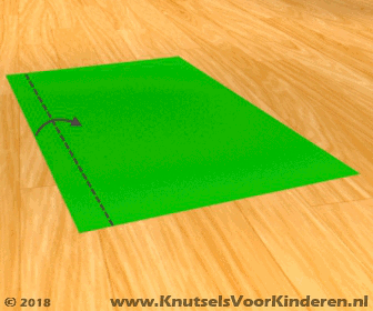 Pak een groen of wit A4 blaadje en leg het voor je met de lange zijde naar je toe. Vouw de onderste rand naar boven en maak een strookje van ongeveer 1,5 cm breed.