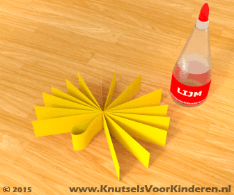 Vouw alle strookjes uit elkaar zodat ze ongeveer een cirkel vormen.