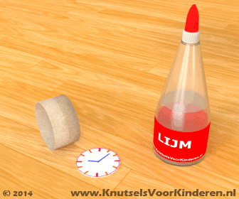 Teken met stiften (of iets anders) een klok met wijzers op het papieren rondje.