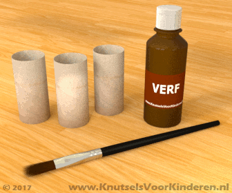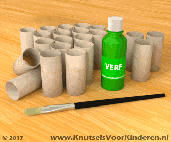 Verf de laatste 3 wc rollen bruin voor de stam van de kerstboom.