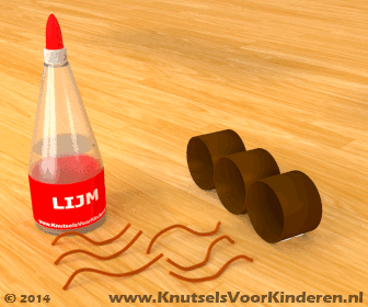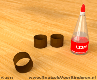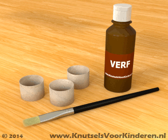 Als de verf droog is, plak dan de 3 stukjes wc rol tegen elkaar aan.