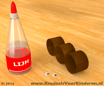 Plak 2 oogjes op het voorste stukje wc rol. Dit kunnen kant-en-klare oogjes zijn, of je kunt ze zelf maken met bijvoorbeeld wit en zwart papier.