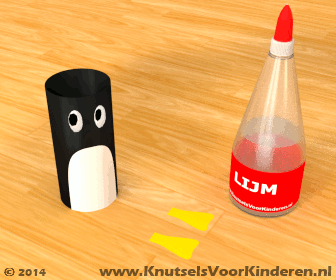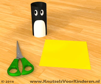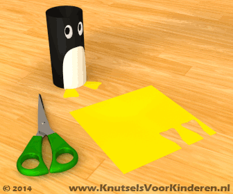 Knip een klein driehoekje uit het gele papier voor de snavel van de pinguin.