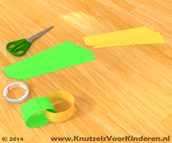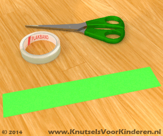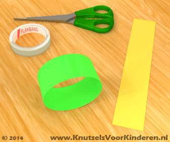 Pak een strookje papier en maak er een rondje van. Plak de uiteinden met een klein stukje plakband (of lijm) vast.