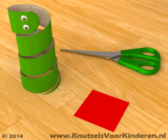 Pak een stukje rood papier en knip er een puntige tong uit voor de slang.