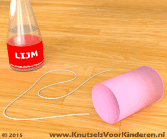Pak het tweede touwtje en lijm deze aan de andere kant van de roze cirkel met sterke lijm vast.