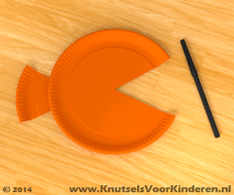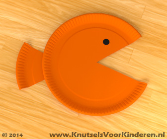 Keer het bord weer om en teken of verf een oog voor de vis.