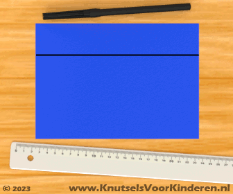 Leg een liniaal langs de korte zijde van het dubbelgevouwen papier en zet bij 4 cm vanaf de open kant een streepje met pen, potlood of stift. Doe hetzelfde aan de overkant van het vel. Teken een rechte lijn van het ene naar het andere streepje.