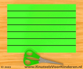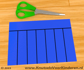 Knip of snij het papier langs de lijnen gemaakt in de vorige stap om zeven gelijke strookjes te krijgen.
